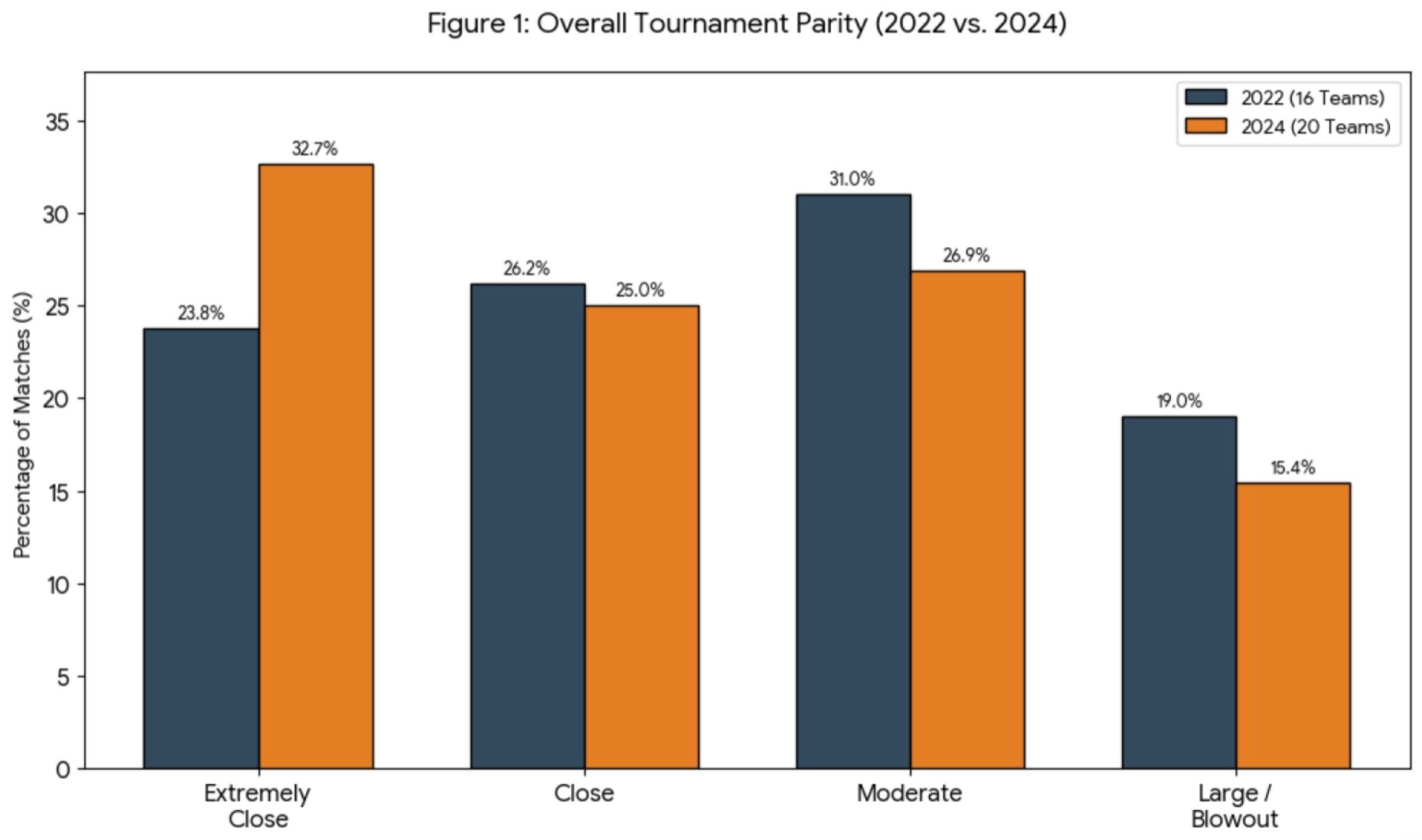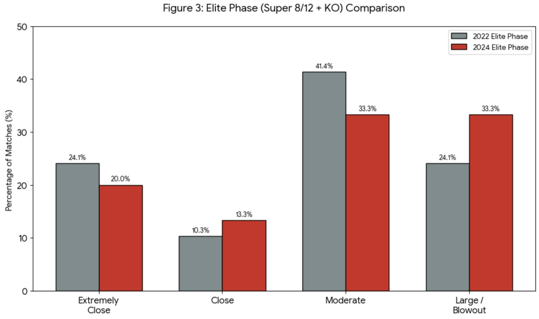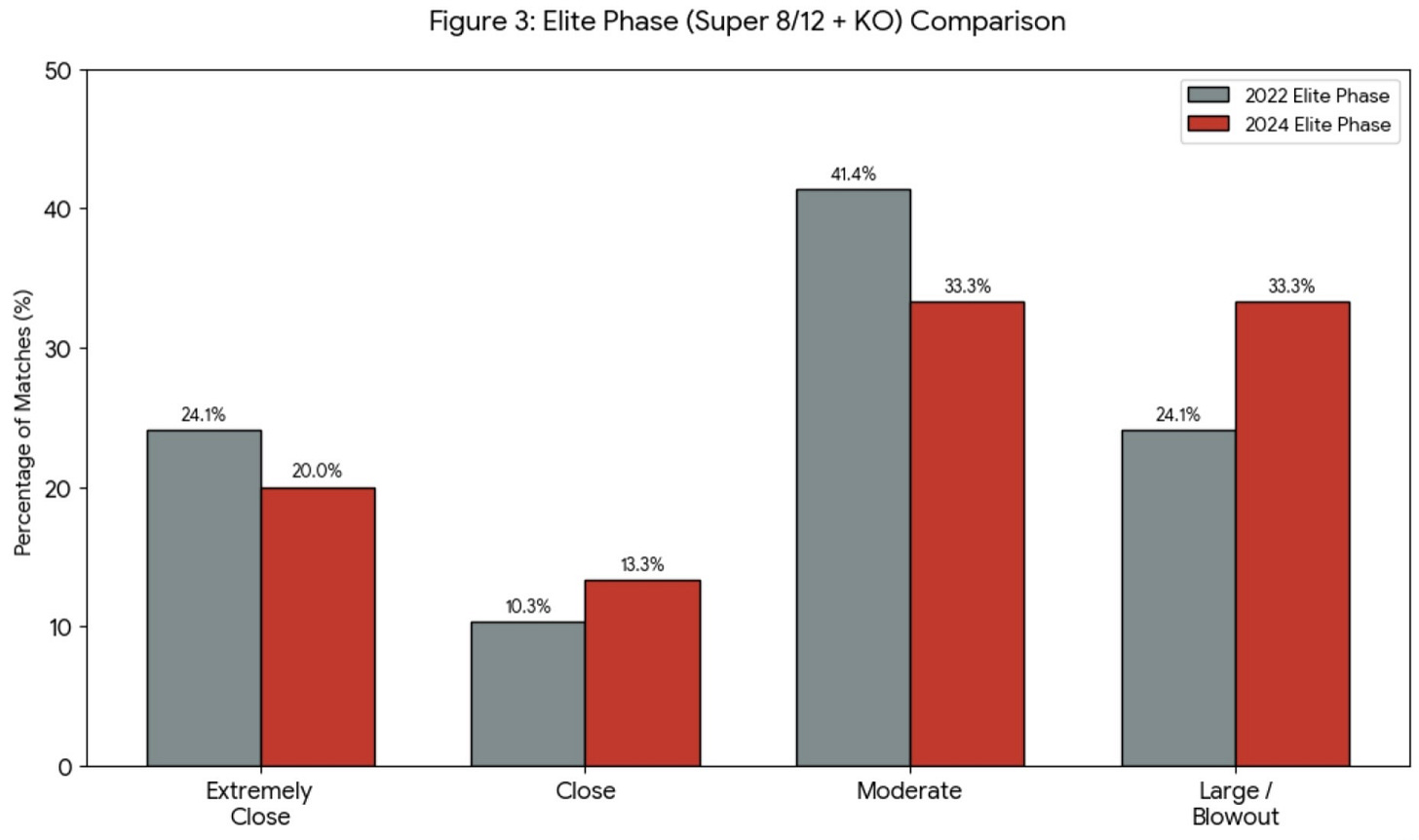 Figure 1. compares match competitiveness in the 2022 tournament in Australia with the expanded 2024 tournament in the West Indies and USA.