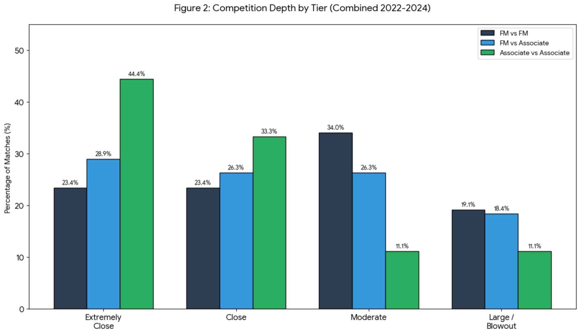 Figure 2: Competition Depth by Tier (includes all completed matches in the 2022 and 2024 editions of the mens T20 World Cup)
